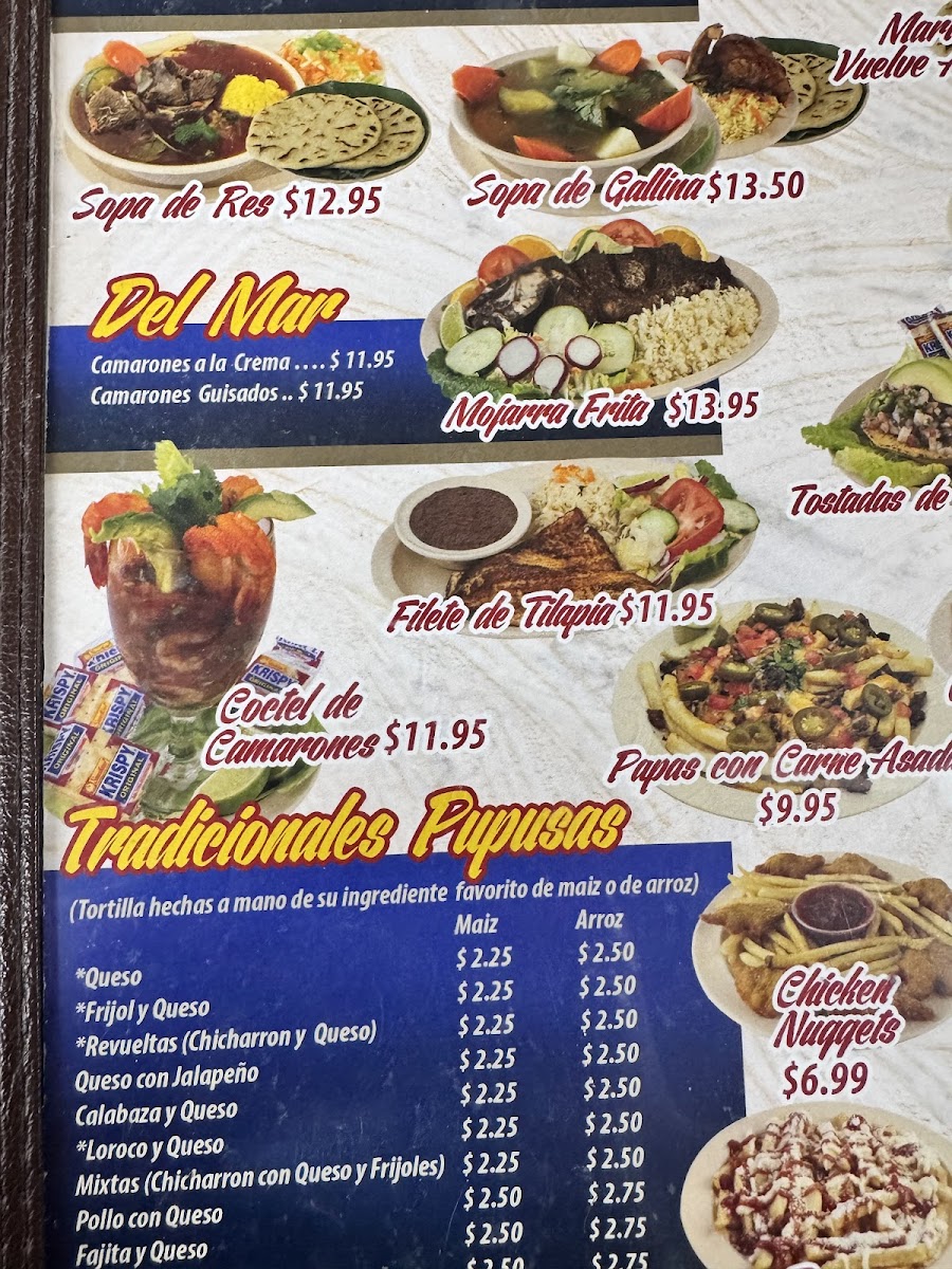 “ First time trying this place and I really enjoyed the food. We ordered the pan con pollo, pupusa revuelta, coctel de camaron, limonada and agua de horchata. 10/10 ”